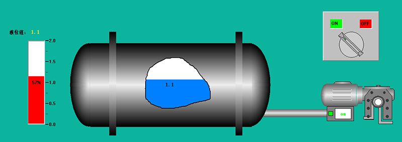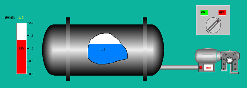 軟件樣圖中所示,用戶不僅可以通過軟件界面直觀的讀取儲罐的液位數(shù)據(jù),還可以通過點擊右上角的開關(guān)直接對現(xiàn)場的電機供電開關(guān)進行控制。