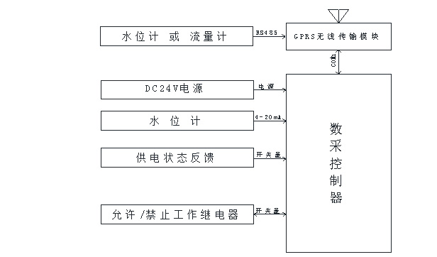 在公司中控室設(shè)監(jiān)控中心,配置服務(wù)器,安裝實時監(jiān)控管理系統(tǒng);在各液位監(jiān)測點安裝數(shù)采控制器和DTU模塊,監(jiān)測液位及開關(guān)狀態(tài)等數(shù)據(jù),并可遠程控制燃料機供電,DTU模塊內(nèi)配置一張物聯(lián)網(wǎng)卡,通過運營商網(wǎng)絡(luò)平臺將監(jiān)測數(shù)據(jù)傳輸至監(jiān)控中心管理系統(tǒng)軟件。借助運營商網(wǎng)絡(luò)平臺傳輸數(shù)據(jù),只要有手機信號的地方就可以進行無線數(shù)據(jù)傳輸。