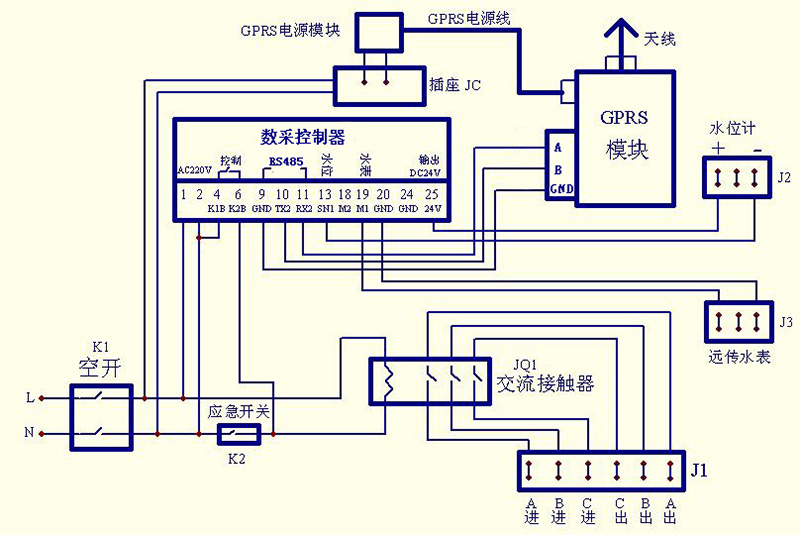 3、遠傳控制系統(tǒng)原理示意圖及接線圖: